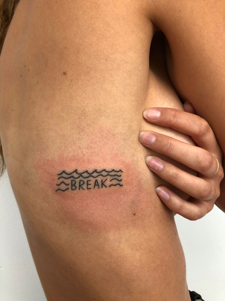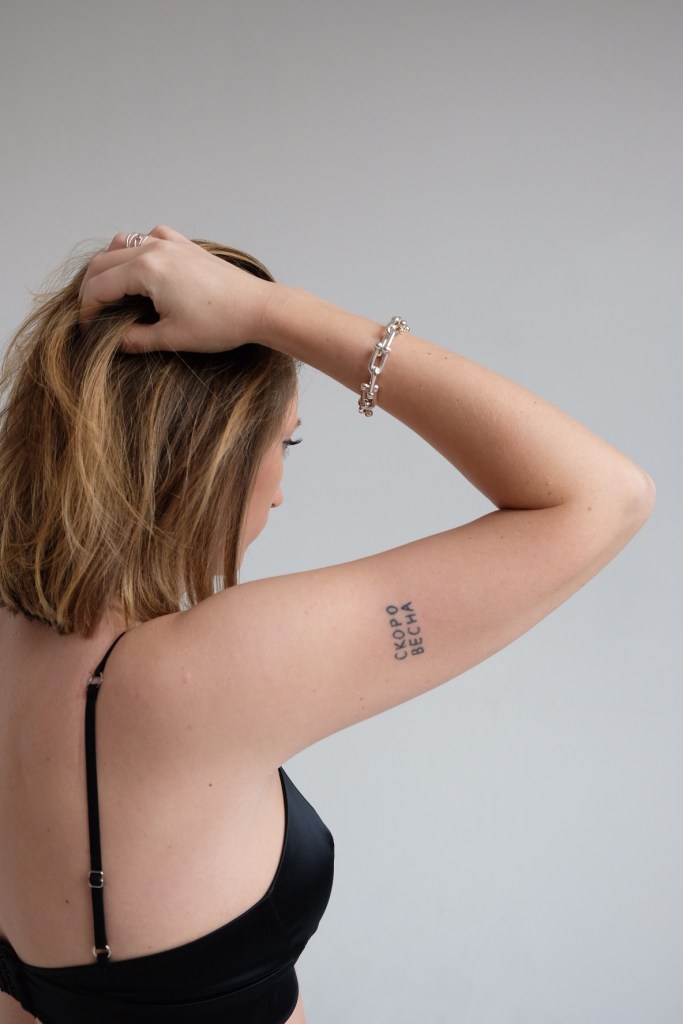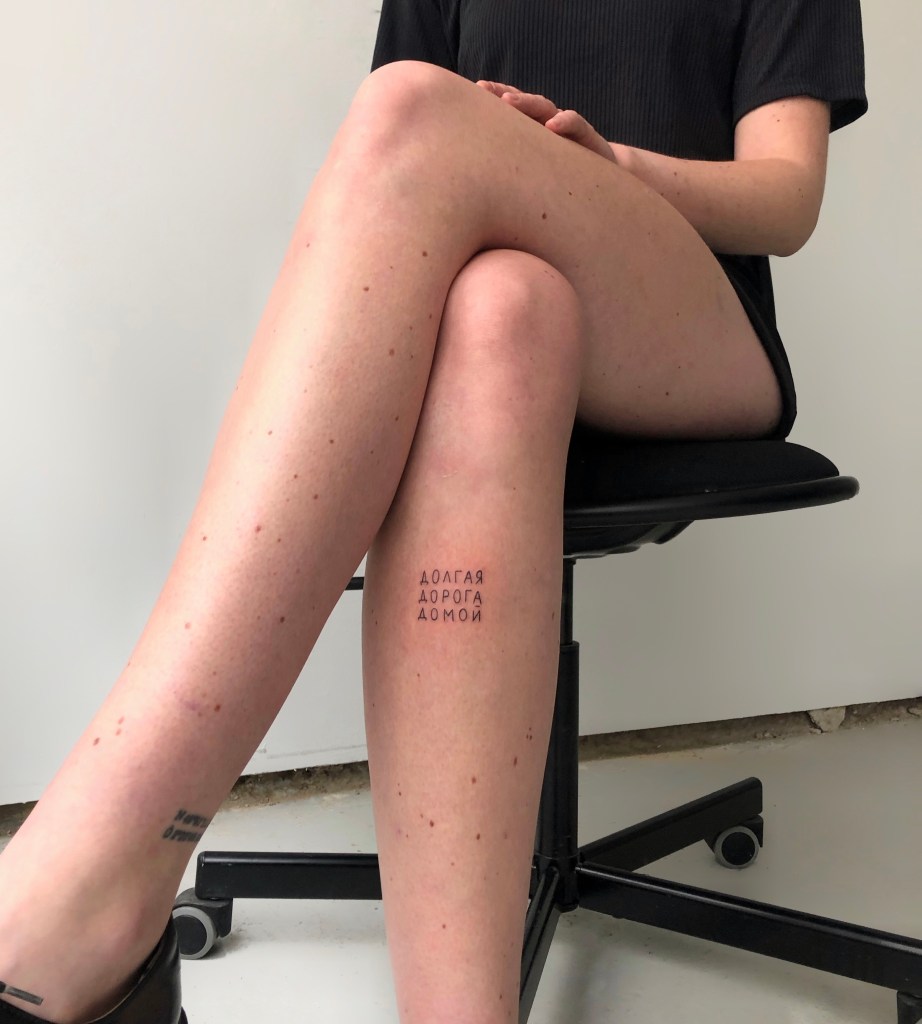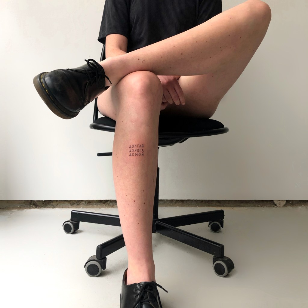 ‘Couldn’t you wait for me?’ I asked staring at his tattoo. ‘I really needed it at that time! I went to the best tattoo parlor in Vilnius and asked for a handpoke, just one word. I had spent an hour with the tattoo master trying to copy your handwriting and then he said that he was unable to do it handpoke, so we did it by gun,’ he laughed.